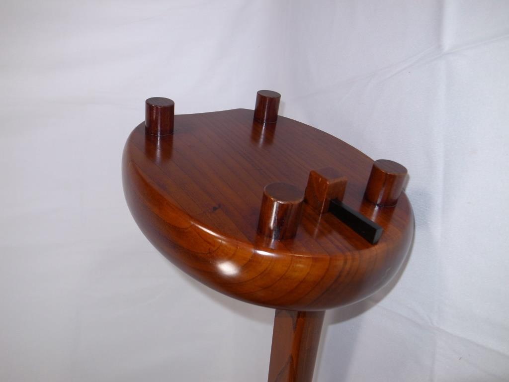 総欅製琵琶台。拭き漆仕上。竿の部分が抜き差しできます。サイズ 台の幅27.5㎝ 縦31㎝ 高さ9.5㎝ 竿を立てた状態の高さ 78.5㎝